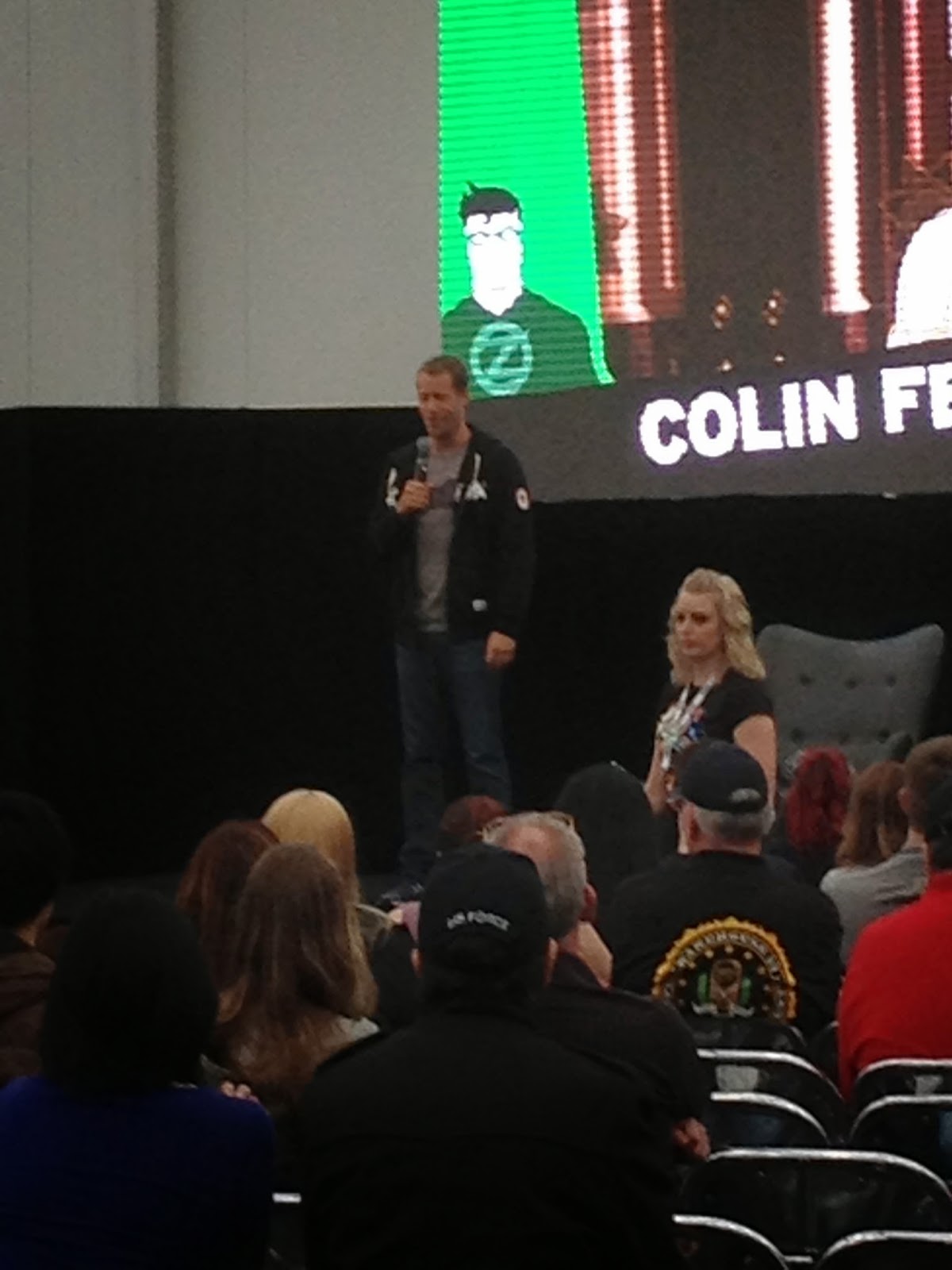 It wasn’t all costumes and merchandise. There were also quite a few celebrities doing the requisite on-stage appearances, photo ops, and autograph signings. I ducked into one appearance by Colin Ferguson (Eureka, Maytag commercials, etc.)